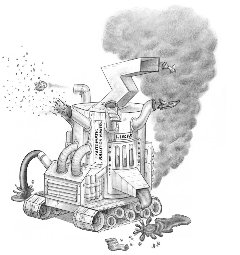 A device designed to pump out toxic smog on purpose, additionally capable of ejecting rotten apple cores, slimy banana peels, oil, green slimy goop, old smelly socks, plastic confetti, and more!